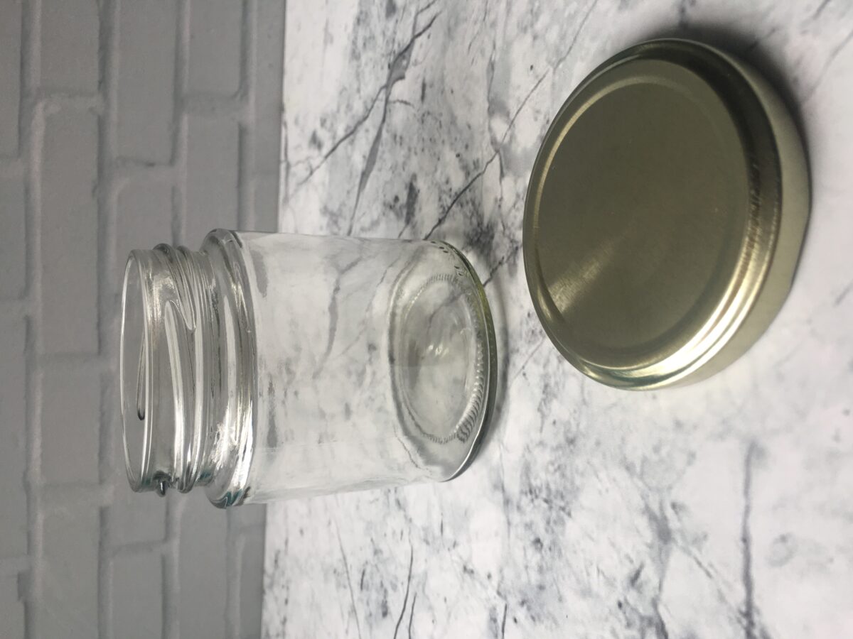 Material:  vidrio y tapa metálica dorada