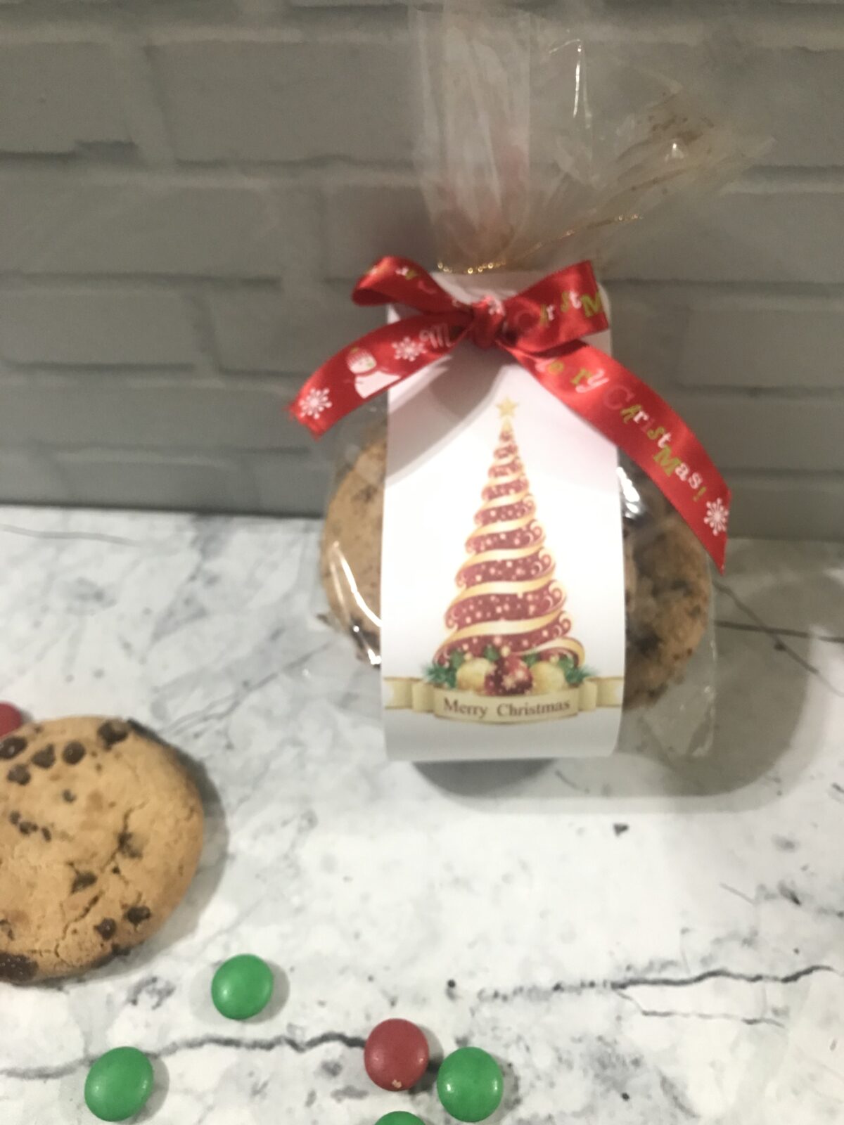 Funda de Polifan para Galletas con cinta Árbol rojo Merry Christmas