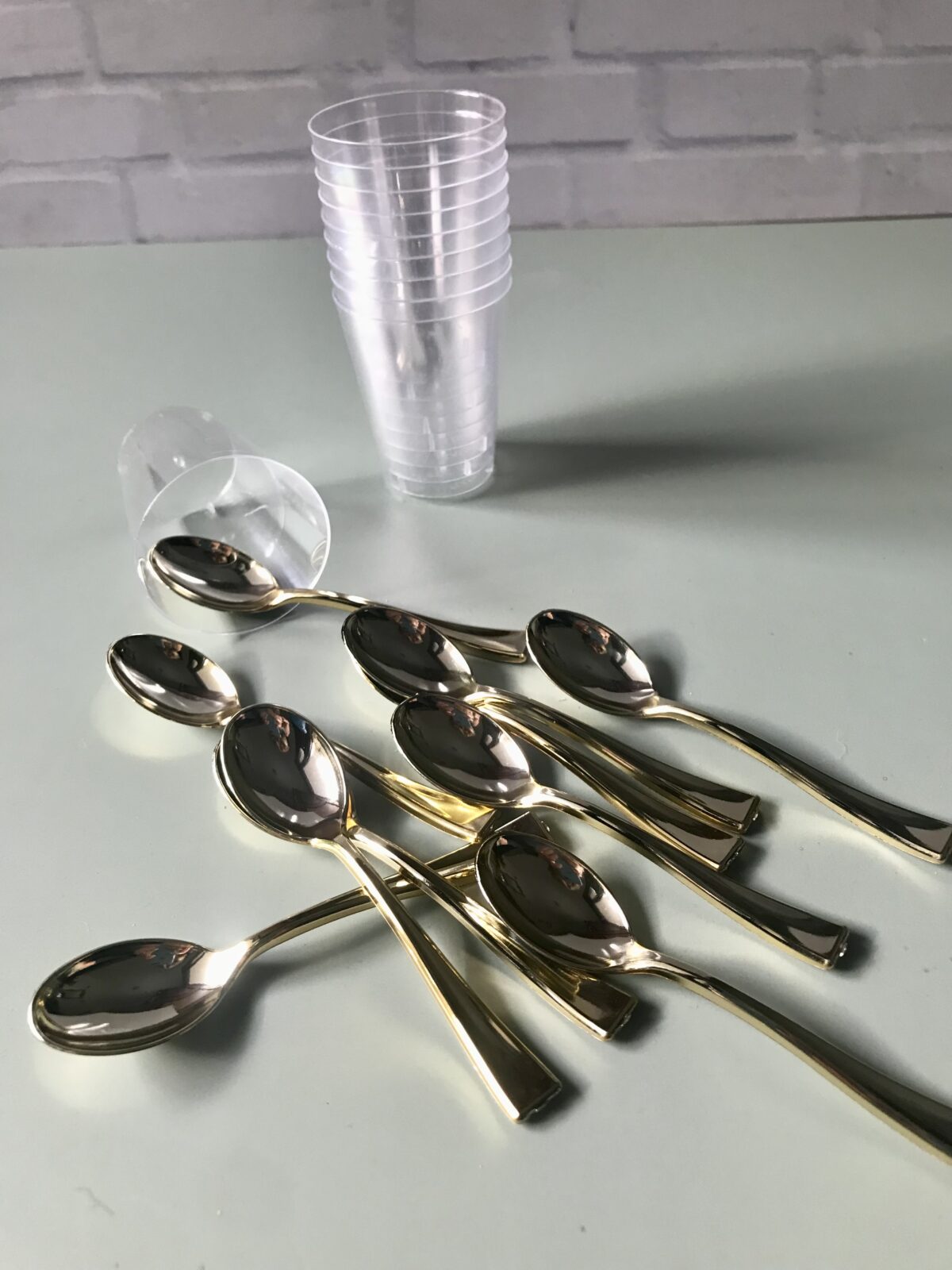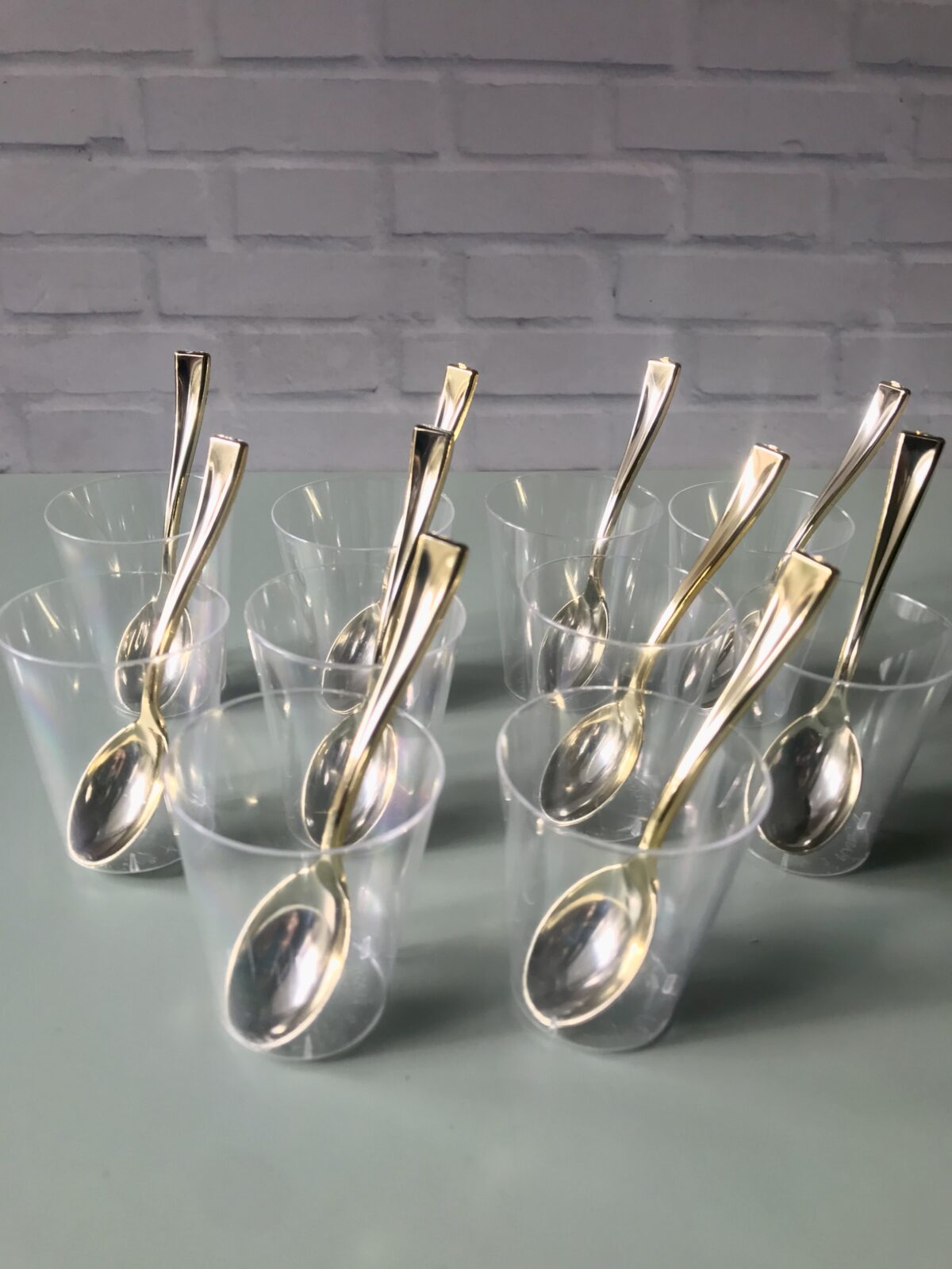 InicioDECORACIÓN NO COMESTIBLEEnvases para Postres y Bocaditos Mini Vaso cristal con cuchara Dorada para shot