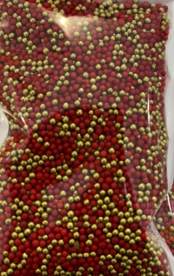 InicioNAVIDADSprinkles / Perlas /Chispas de chocolate y Decoración de azucar Sprinkles Navidad / Grageas rojas y dorado